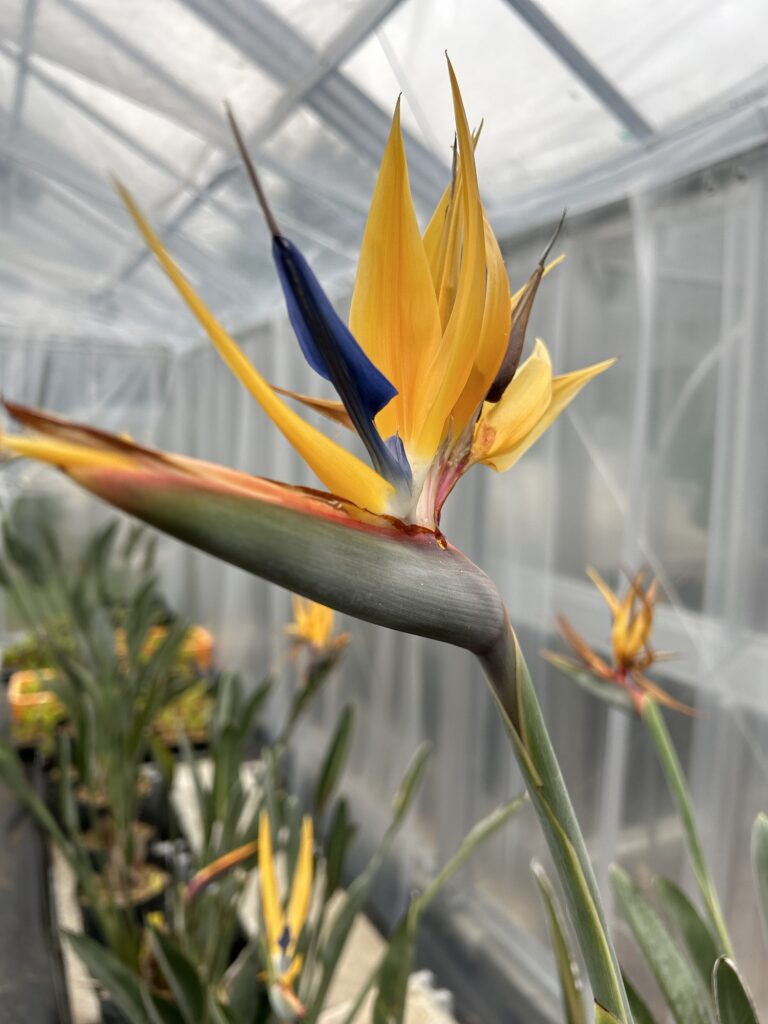 ストレリチアで一番、目立つのは花です。その中でも際立っているのが、花弁(実は萼)と苞の色彩です。
