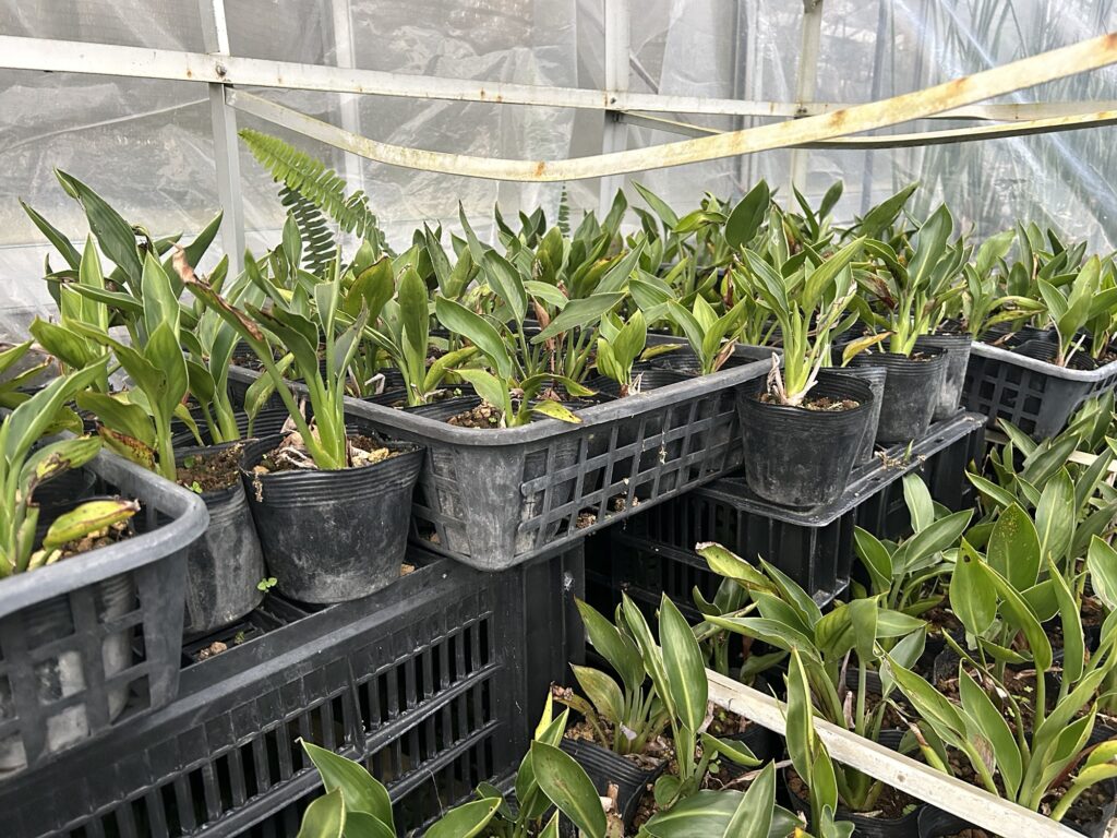 2023年2月、10年ぶりの寒さで、前年、発芽したストレリチア実生苗約 600本が、寒さ除けをしたにも拘わ、ず、凍って枯れてしまいました。それでも、約10本が生き残ってくれたのです。これを見て育種家は、あらぬ望みをいだいてしまったのです。