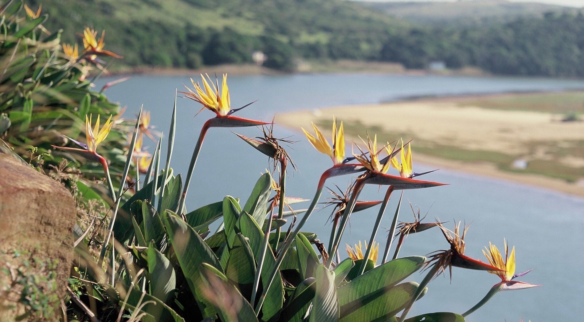 近頃、次々とストレリチア自生地が消えているとのことですが、ここは、まだ、残っているのではないかと思われます。それというのは、この自生地の断崖の上を、川口のリゾート地への道路が通じているのですが、なにせ、断崖の下ですから、道路からは見えません。それに川岸の崖では開発の見込みはなさそうです。ただ一つ、心配なのは盗掘です。岩陰や急斜面にありますから、普通なら、とても近づけない場所ですが、命知らずだったら、やりかねません。