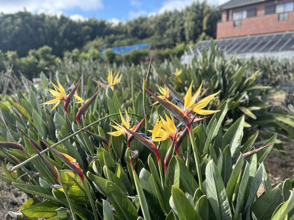 我が家のストレリチア圃場の開花を眺めて、改めて感慨を覚えています。数十年前の風景とは様変わりしているのです。あの頃のストレリチアの花は、もっと地味でした。それが今見る風景は、断然、華やかなのです。