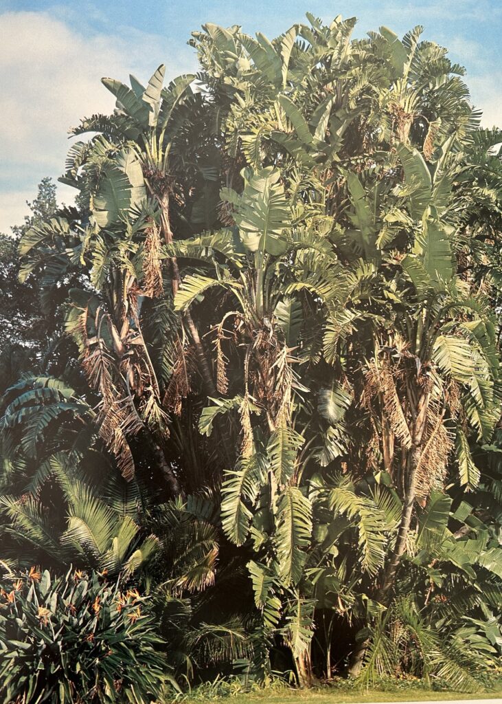 アフリカ大陸が、まだ、温暖、湿潤だった悠久の太古の時代に誕生したストレリチアは、大柄で、湿った環境を好む、現在の大型種に近い姿をしていたものと思われます。その後、やってきた乾燥化の時代になると、一部は乾燥に耐えるよう小型化して現在の無茎種の進化し、残った大型種は、少しは乾きに適応しようとしたものの、不十分なまま、湿り気の残る地域に生き続けてきた有茎種の二通りに分れたものと思われます。