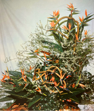 極上品をみるなら華展に足を運ぶことです。生け花のお師匠さんが自らの誇りをかけて出品する芸術作品が並んでいます。ストレリチアの切り花も、必ずとは言えないながらも、よく使われているのです。私は長い間、これに使われる花を提供してきたので、事情は或る程度わかります。