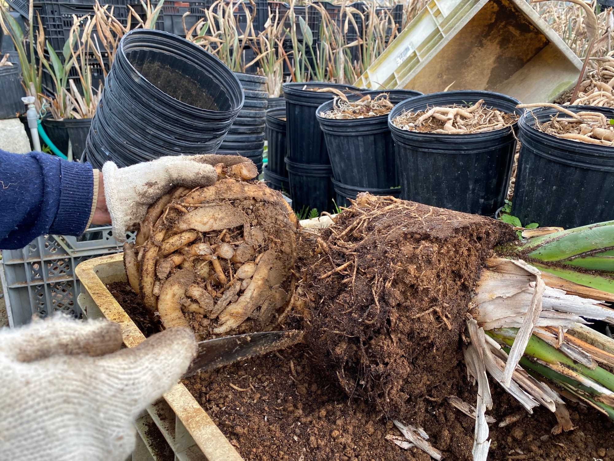 これが味わえるのは、この季節だけです。このようにして、ようやく植え替え終えましたが、根が育ちの悪かったのは一鉢もなくホッとしています。でも、こんな人ばかりでは無いでしょう。出来の悪い株を見て頭を抱えてしまう人も居るはずです。結局、この季節は、良くも、悪くも、今までの栽培の評価がされてしまうのです。結果が悪かったなら、原因を究明して訂正をしなければなりません。腕を磨く季節でもあるのです。