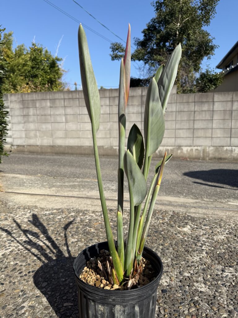 ストレリチアは観葉植物ではありません。初秋を彩るのは葉や葉柄が形作る草型だけの外側だけの部分に見えますが、それだけでは困るのです。葉の基部には花芽が伸び始めていなければなりません。これがあってこそ、初めて本来の実質上の姿といってよいでしょう。