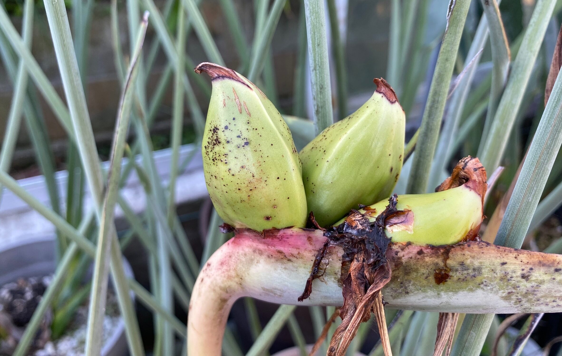 私の仕事はストレリチアの育種が中心ですから、毎年、交配して種子を採っています。それが今年に限って今までにない変化が起きてきたのです。或る優秀品種の花粉を色々分散して付けたのですが、種子の出来る量が母様の系統によって大きな差が生まれたのです。