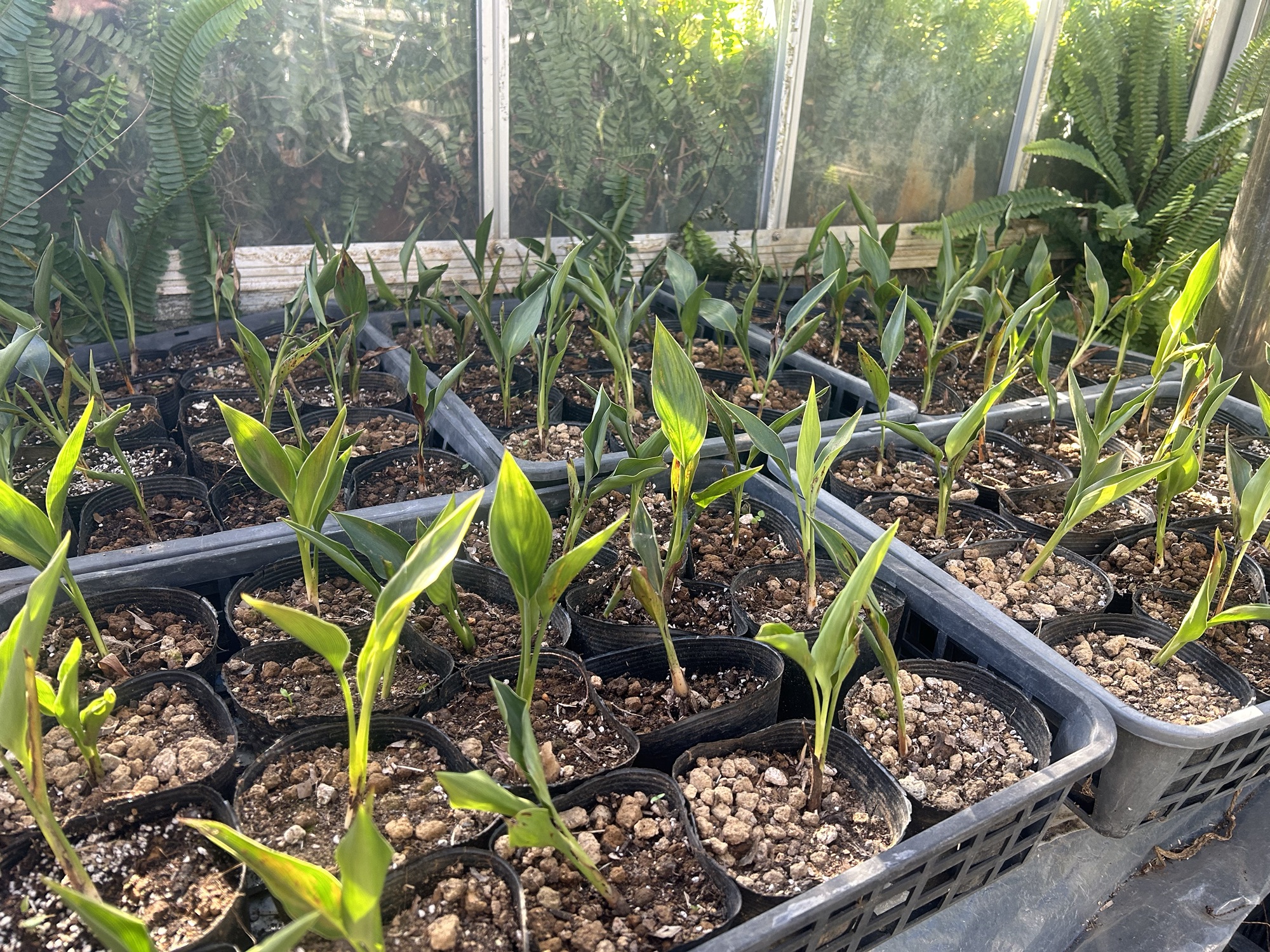 ストレリチアを相手にしていて、一番の楽しみは、夏の朝、植物たちに会いに行くことです。苗や若い株は、日中は強い日差しを受けて葉を丸めて耐えている姿なので、「大丈夫かなあー」と心配で、落ち着きませんが、朝は堂々と葉を広げ、力一杯の生育ぶりをみせてくれているのです。ストレリチアは変化が少なく、育っているか、どうかがわからない季節が多いのですが、夏は別です。一日毎の成長ぶりがわかるほど育ってくれるのです。育種家としての私の最大の目的は優秀品種の作出にありますが、この夏の朝の喜びに比べれば、そんなことは霞んでしまいます。